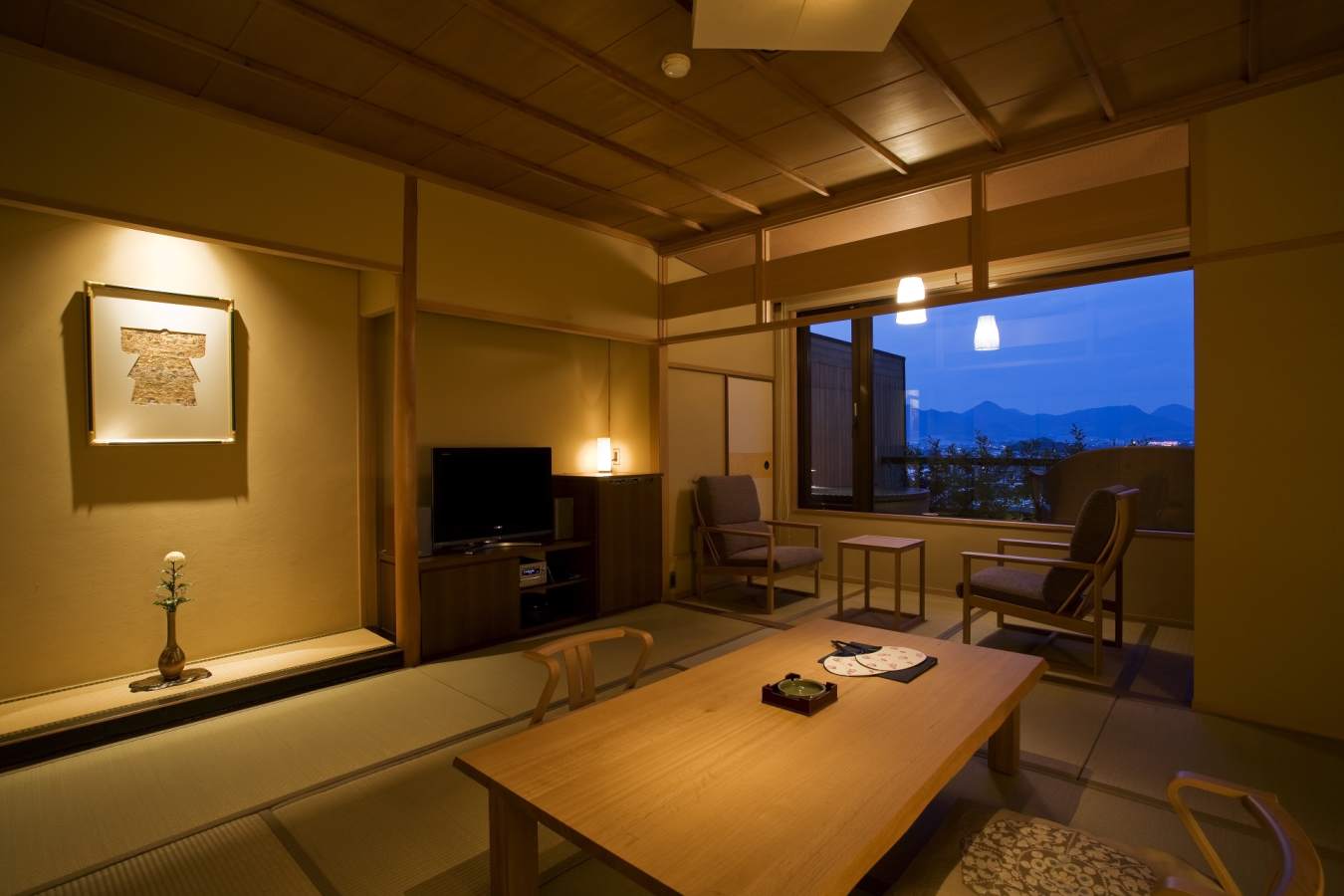 Accommodation blends traditional and contemporary styles to create tasteful and restful rooms. Guests can choose between Japanese style rooms with tatami mats and futon beds, or western style beds. Some rooms have open-air baths. Upgrade to a Japanese house and you will be treated to a four-poster bed, an elegant and spacious seating area, and an outdoor hot spring bath. Some rooms keep watch over the town, whilst others enjoy views of the gardens.