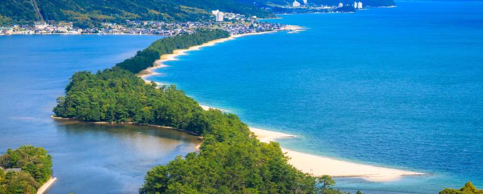 Stretched along the Miyazu Bay scenic area, Amanohashidate is often revered as the "Kyoto by the Sea" and ranked alongside Japan's top three most scenic views.