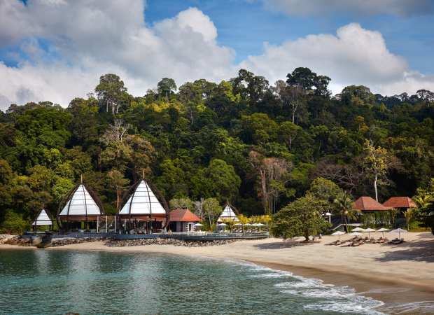 The Ritz Carlton Langkawi is set around two sandy coves overlooking the Andaman Sea, and surrounded by 10-million-year-old rainforest. The resort aims to embrace its natural surroundings, as well as incorporate Malaysian heritage into its design.