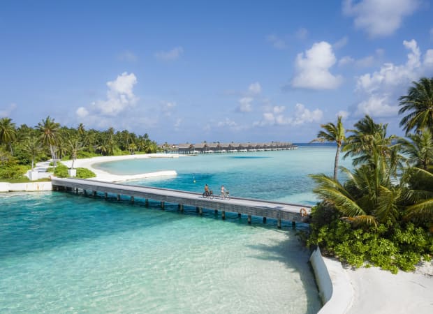 These spacious (255 sqm) villas are perfect for couples and families. Offering total privacy and direct access to the beach, as well as sunset views of the sea from the bed, they promise indoor and outdoor living at its best. They feature a master bedroom with king size bed, living room with a comfortable sofa bed ideal for two young family members, guest washroom, open air bathroom with choice of indoor and outdoor showers, private sun deck with daybed, traditional Maldivian swing, sun loungers and dining table, private ‘family sized’ plunge pool, Deli-In brimming with gourmet drinks and treats including complimentary popcorn and ice cream, in-room entertainment system with LED TV, Bose 5.1 Surround System and wide range of international and foreign language movies and a personal Thakuru offering butler service Maldivian-style.