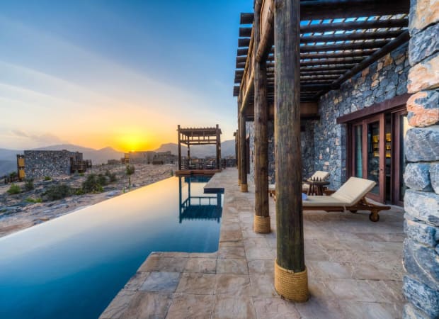 The hotel sits on a cliff top in the central section of the Al Hajar Mountains, 2,000 metres above sea level. It is approximately 150 km from Muscat and under an hour's drive from Nizwa.