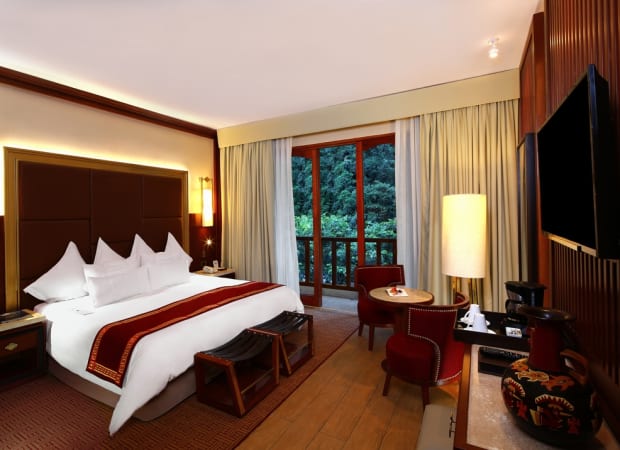 Set on the banks of the Vilcanota River, the Sumaw Machu Picchu Hotel is designed to blend harmoniously with the surrounding landscapes. Guests can enjoy the gorgeous setting, with its lush vegetation, green valleys, waterfalls and ancient trails. The hotel's luxury interiors reflect Inca culture, traditions and Peruvian craftsmanship with Alpaca fibre blankets and fine cotton linens. The hotel is located within the Machu Picchu's historical sanctuary and the hotel provides a shuttle to Machu Picchu itself.