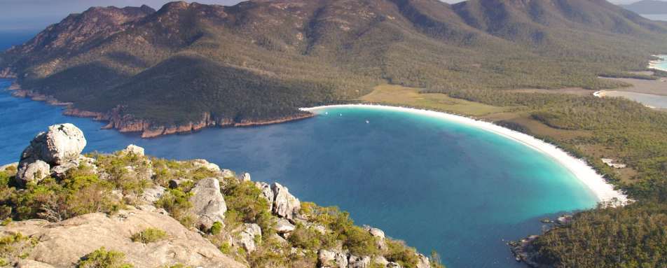 Ripples of bottle-green forested mountains tumble down to impossibly white beaches and aquamarine waters, their dense foliage concealing a diversity of native wildlife. One of the highlights of Tasmania, this exquisite national park offers some of the best hiking trails, including the climb to view the picturesque curve of Wineglass Bay.