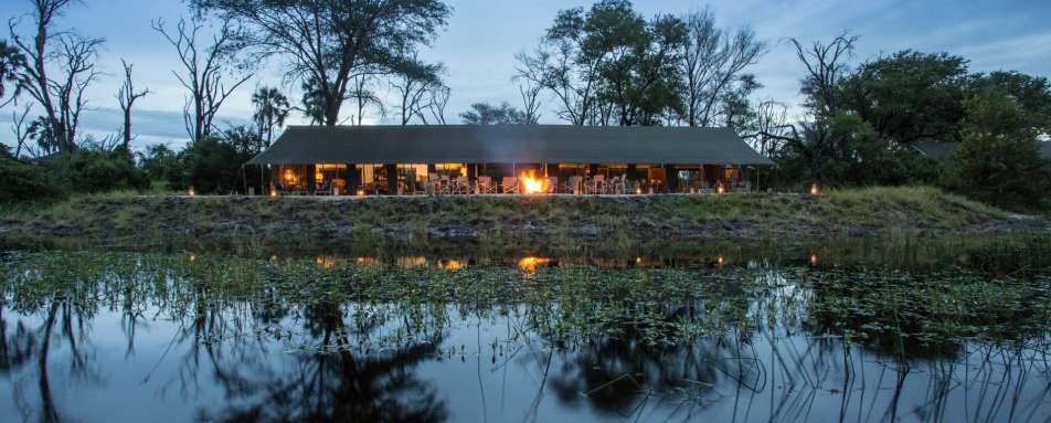 Set in a cool sheltered spot beneath a canopy of mature acacia trees, Gomoti Plains Camp is situated on the edge of the Gomoti river system and flood plains right in the centre of the Okavango Delta in Botswana, providing wild and pristine game viewing.