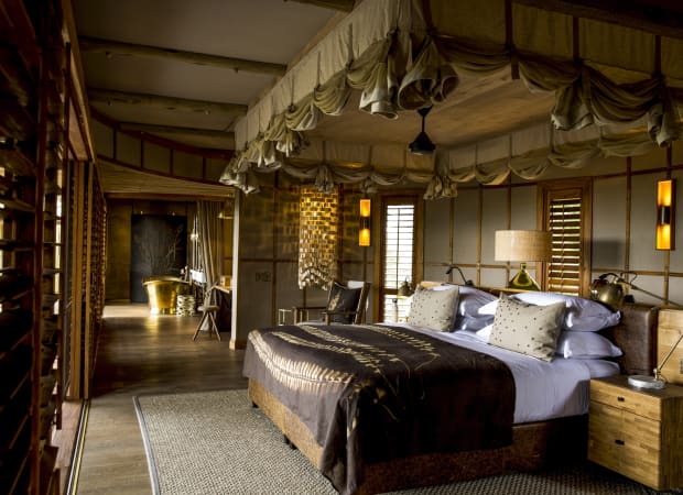 Each beautifully designed tented suite has its own entrance, sitting room with a bar, separate bedroom and bathroom areas with a dressing area, indoor and outdoor showers, double vanity and a separate toilet. Each private deck boasts a private plunge pool and swing bed that overlooks the Delta.