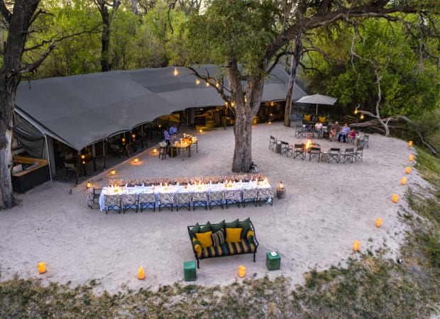 There are ten tents here, eight luxury tents and two family tents which have two bedrooms and a shared lounge area. Each has been designed with comfort in mind, with comfy beds, fluffy pillows, chairs to relax in and read a good book during siesta time, and en-suite bathrooms. Each overlooks the Moremi and Khwai rivers, offering picturesque views and the possibility of a spot of game-viewing from the front of your tent if you're lucky!