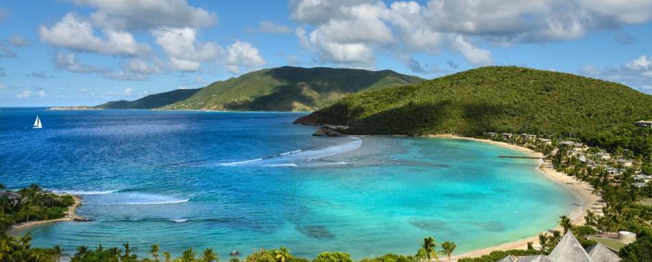 Little Dix Bay stands on a half mile beach of powder white sand with a backdrop of a forested hillside and a view overlooking turquoise waters and a colourful barrier reef beyond.