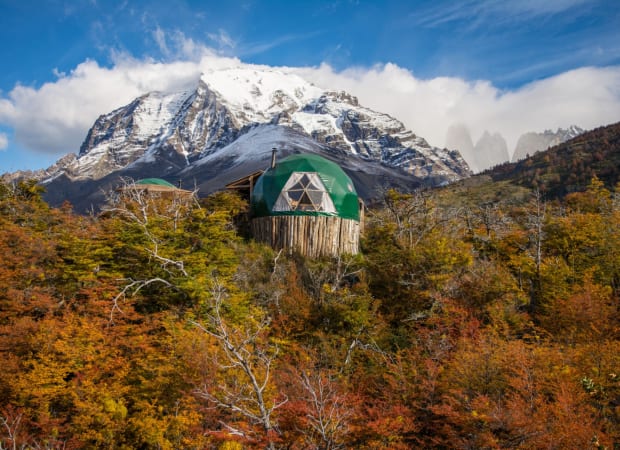 A hearty buffet breakfast is served in the dining domes with a view to the magnificent sierras. A daily packed lunch is provided for guests to take out on excursions before returning to the domes for a delicious three course dinner combining Chilean and Patagonian flavours and utilising only the freshest, locally sourced (often grown onsite) ingredients. In the evenings, head to the bar dome for its wood burning stoves, sofas and cosy chairs to enjoy a craft beer, fine Chilean wine or the nation’s favourite cocktail, a pisco sour. It’s also in the bar dome where the daily briefings are held and guides reveal to guests the details of what awaits on the next day’s excursions.