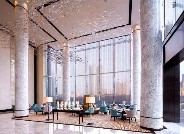 Inside, the hotel is spacious and airy with an abundance of natural light. An impressive collection of art adorns the walls, with the glass-walled atrium taking on a gallery feel. The 230 rooms are similarly sophisticated, with floor-to-ceiling windows and stylish interiors featuring earthy tones, natural fabrics and high-count cotton sheets. All rooms and suites feature impressive city views, some looking out to the Da Ci Temple or the sculpture garden. The lavish suites offer additional space and occupy premium locations in the hotel’s towers, to best take advantage of the views.