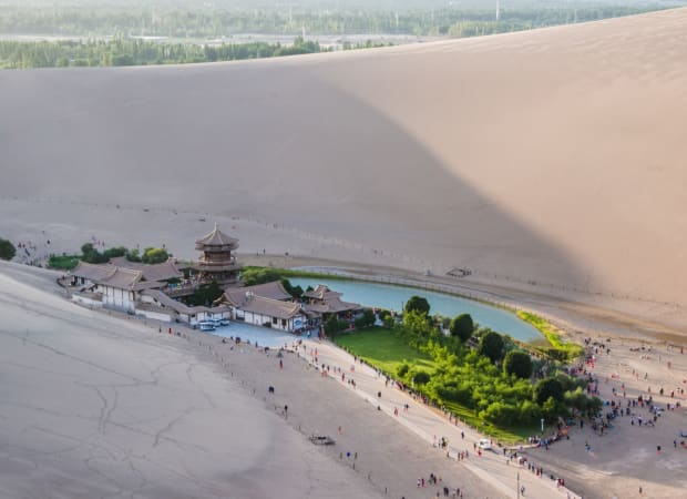 Designed to resemble an ancient fort, the Silk Road Dunhuang seamlessly blends traditional Chinese architecture with modern hotel amenities creating a delightfully rustic and atmospheric property on the edge of the glorious Mingsha Sand Dunes.