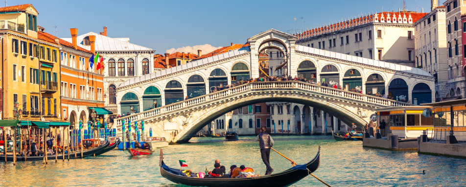 Relish in the quieter waterways off the Grand Canal in a gondala - a one-of-a-kind way to experience this unique city