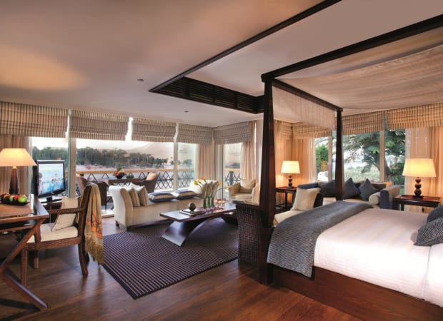 The Movenpick Resort's rooms overlook the Nile on both sides of the island, either towards Aswan or Kitchener's Island and the Botanical Gardens. The Panorama Restaurant also has fantastic views from the 13th floor, and is open for afternoon tea and dinner. As the Movenpick Resort is located on an island, it is reached by boat giving it a unique setting the ferry shuttles backwards and forwards every ten minutes. The rooms are very comfortable, containing safes and minibars, and available with either king or twin beds. There are Royal Villas overlooking Kitchener's Island to the west which have two bedrooms and are ideal for families.