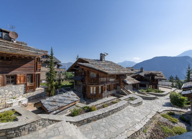 The ideal base for a trip to Courchevel, Chalet Carat is around a 20-minute walk or 3-minute drive from the prestigious shops, bars, and restaurants at the heart of the village. One of five chalets in the exclusive Domaine de Bellecôte, the chalets share an underground garage, with access from the lower ground floor. Spread over three storeys, Chalet Carat’s main living area is on the top floor, where guests can sink into the sumptuous furniture to enjoy mountain views, warmed by the blazing fire. The dining table seats up to eight guests and there is a high spec kitchen, ambient lighting and built-in Sonos system to create the desired ambience. This floor also includes a guest WC and children’s cosy bedroom, sleeping two under the eaves with an enchanting arched window and TV. The bedroom has a dedicated shower room, accessed via a small staircase.