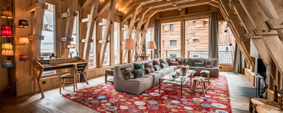Chalet La Grange is one of the five sumptuously appointed chalets located within La Mourra that comes with a chef and excellent facilities such as a private spa with indoor swimming pool and a home cinema room. Chalet La Grange is designed with reclaimed wood and warm, tactile fabrics.