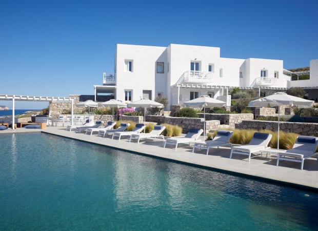 Milos Breeze is a picturesque boutique hotel on the northern coast of Milos, located just a 10-minute walk from the town of Pollonia. Thanks to its fantastic location, the hotel has panoramic views across the sea and the town.