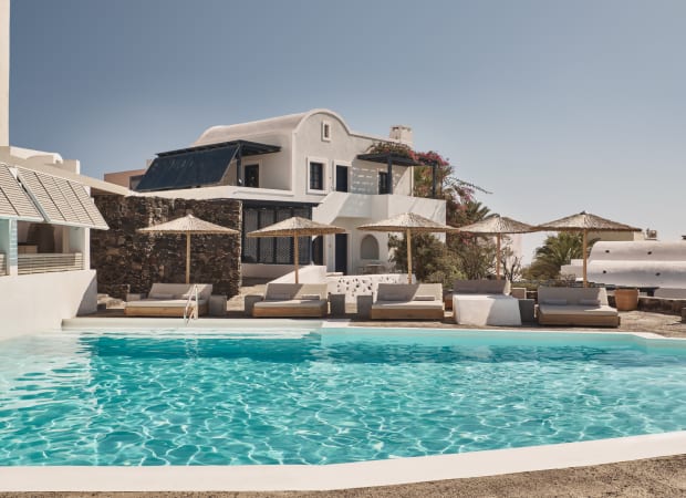 Vedema offers a rustic getaway with a secluded location on Santorini’s west coast in the medieval village of Megalohori. This spacious hotel boasts large suites and villas as well as transport to a local beach, making it an ideal choice for families.