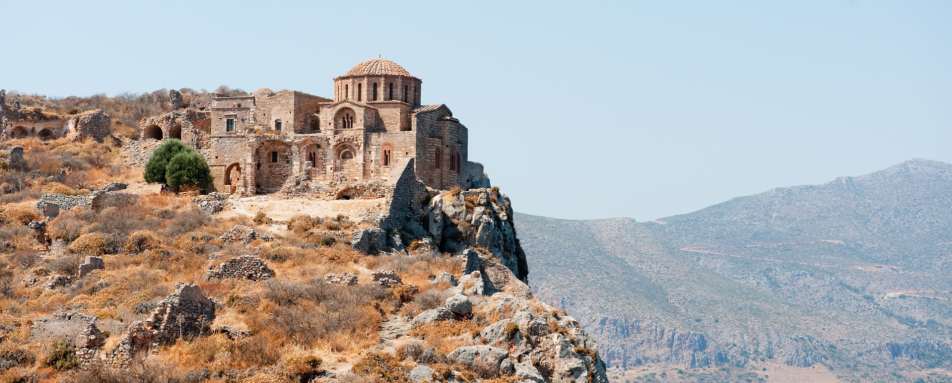 Visit the impressive island of Monemvasia, with its striking, dramatic cliffs and charming medieval town. Your local guide will regale you with the town's legends and myths as you explore the narrow, winding streets and take in the incredible view across the Aegean Sea. Walk the path to the Upper Town to wander through the fortress ruins and marvel at the spectacular Byzantine church perched on the clifftop.