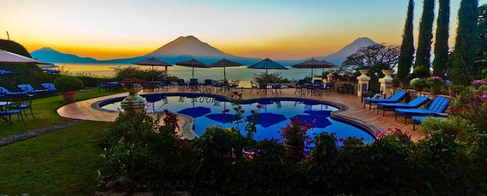 Hotel Atitlán is located on the shores of Lake Atitlán, Guatemala, with uninterrupted views of the lake and the Atitlán, Toliman and San Pedro volcanoes.