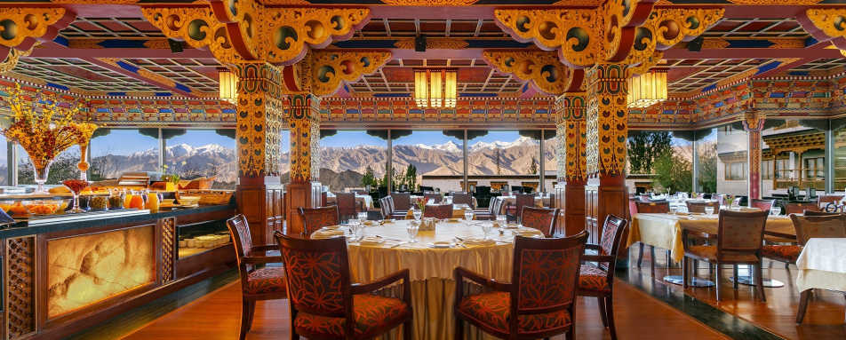The Grand Dragon offers a range of dining options including Indian, Chinese and European fare in two beautiful settings. Alongside this, adding to the comfort there is also a fully equipped gym, sauna and steam room. The property is stylishly decorated throughout with colorful traditional Ladakhi woodwork and plush vibrant textiles reflecting the vivid colours of the ever changing sky over the Himalayan peaks. Also throughout the hotel guests will be greeted with stunning handmade paintings by Gulam Mustafa, the first modern artist of Ladakh.