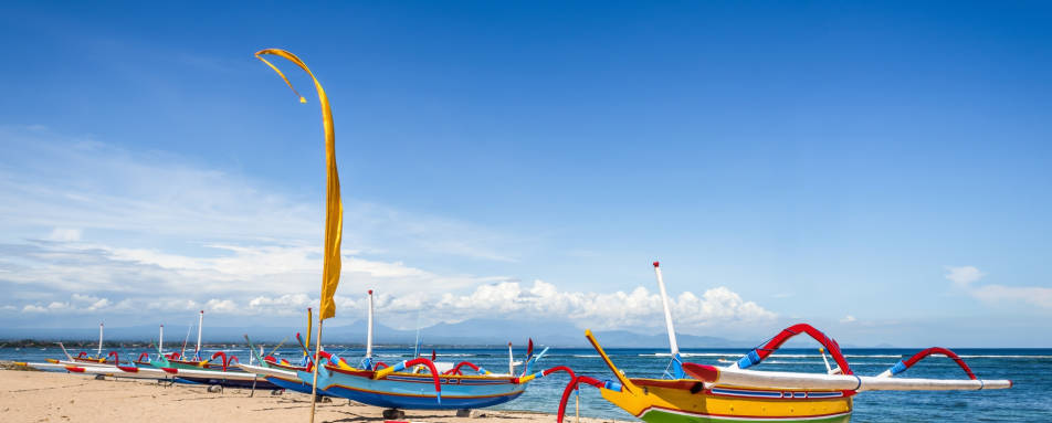 On the southeast coast of Bali, Sanur is one of the original beach destinations of the Beatnik generation. Thanks to a protective barrier of coral reef running parallel to the shoreline, the waters here are calm and safe for swimming. Coupled with a lovely paved boardwalk stretching the length of the long golden beach, it makes this quiet relaxed seaside town, a popular choice for family holidays.