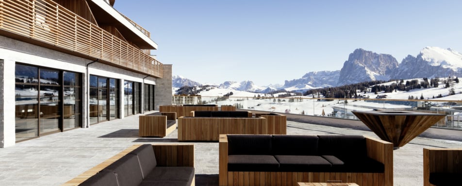 Full of stylish elegance and refinement, the rooms and suites have been designed with the same minimalist aesthetic, with feature wood panelling and a soothing neutral palette. All enjoy wonderful mountain views from the balconies or terraces, large comfortable beds, a den area with a sofa bed, walk-in closets, desk, minibar, safety deposit box, satellite TV and Wi-Fi. Ensuite bathrooms include bathtub, shower, double vanities, and separate WC. Superior Rooms have either a south facing balcony or garden access. Some can be interconnected for families and some rooms have a sliding partition to separate the sleeping and living areas. Book an Exclusive Room to enjoy a south facing terrace. Suites include a separate living room with a bio fire, comfortable seating, and south facing balcony. The ensuite bathroom has the added benefits of a bathtub and double shower, along with an infrared sauna. Sleeping four guests, Deluxe Suites include two bedrooms and two bathrooms, a spacious living room with dining area and whirlpool bathtub. Chalet Deluxe Suites are in the chalet adjacent to the main lodge and are connected via an underground passageway. These feature one bedroom, a living room and bathroom, along with a large balcony. Similarly, Chalet Deluxe Suite Sella are in the same chalet with two bedrooms, living room, bathroom, and large balcony. The Mountain Restaurant & Stuben enjoys spectacular views and in keeping with the hotel’s philosophy of responsible travel, uses sustainable local and regional produce where possible. Serving creative and accomplished Mediterranean, regional and international cuisine, guests can choose from a wide variety of fine wines to accompany the beautifully presented food. Alternatively, guests can enjoy the modern Alpine style and more relaxed vibe of the Alpina Chalet Restaurant, serving favourites that include gourmet pizza, succulent steaks, and Mediterranean classics. To relax with a drink, head to the Mountain Bar, a cosy and refined space with a convivial atmosphere. Guests can also relax on leather sofas in the Cigar Lounge, where the world’s best cigars can be enjoyed alongside premium cognac and spirits. With a focus on wellbeing, the Como Shambhala Retreat offers holistic treatments, health programmes, panoramic indoor and outdoor swimming pools, gym, Finnish sauna, bio-sauna with aromatic herbs, saline or aromatic steam bathing, water beds, and loungers to enhance relaxation and enjoy the magnificent views. Located in Compatsch, at the western end of the Alpe di Siusi, above the famous villages of Siusi allo Sciliar and Castelrotto, the hotel is close to the Siusi-Alpe di Siusi cableway. Innsbruk Airport is a 2-hr away, while Verona Airport is around 2.5hrs away.When to visit