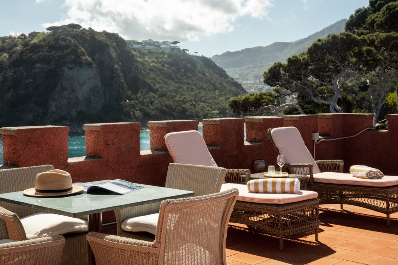 Perched on Ischia's coast, Mezzatorre Hotel & Thermal SPA offers private beach access, thermal spa treatments, luxurious rooms, and gourmet Italian dining, all set against a backdrop of stunning Mediterranean views and historic charm.