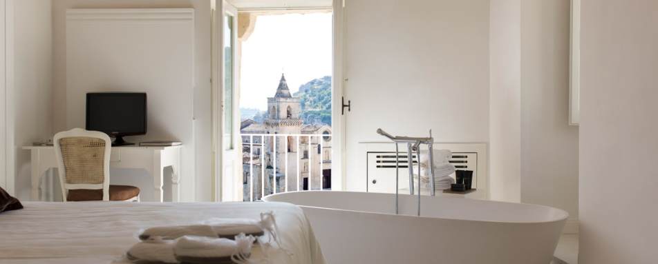 Marvel at Matera’s ever-changing colourful landscape from the convenience of your own suite