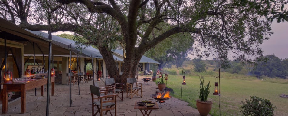 The central lounge of the camp is made up of spacious Nyati tents that house a library and an area ideal for relaxing. Most meals are taken alfresco, overlooking the plains, and the food is a combination of African and international dishes.