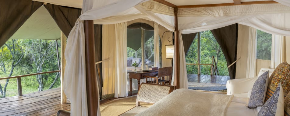 Ngare Serian is the perfect hideaway in the Mara North Conservancy in the Maasai Mara. It is wonderful for guests looking for a romantic and peaceful escape. It is also the most fabulous camp to take exclusively for family gatherings or large groups of friends. There are four spacious tented suites and each of these are situated on a hard wood deck with a veranda overlooking the Mara River.