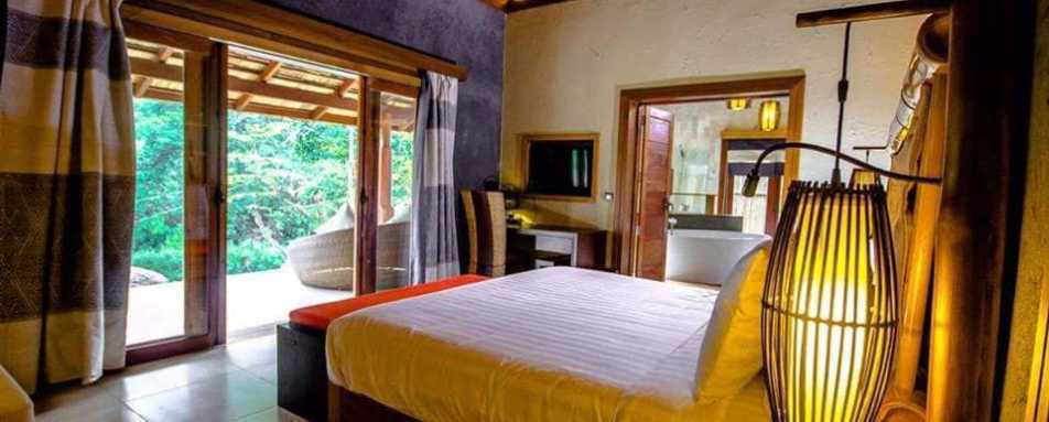 The on-site restaurant serves tasty local food and guests can order food and drinks direct to their rooms. There is a popular spa, shared outdoor pool and an abundance of outdoor activities including trekking to local waterfalls, climbing, cycling, and zip-lining.