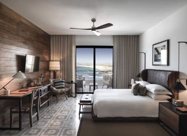 Designed by the acclaimed Mexican architect Javier Sánchez, The Cape is architecturally designed with a modern Mexican twist. All one-hundred and sixty-one rooms have views over the ocean and offers one, two or three bedroom options. Guests can expect custom made Mexican furniture, regional art and private terraces from which to watch the surfers ride the waves or the sun to set behind El Archo. Some rooms feature plunge pools and outdoor day beds.