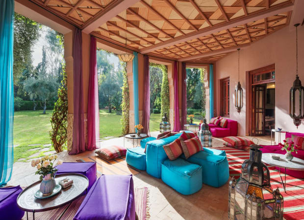 Situated in the heart of Marrakech's lush Palmeraie, Dar Zemora is an opulent oasis of tranquillity, brilliantly located for easy access into the buzzing medina. Three acres of gardens bursting with roses, olive and fruit trees, bougainvillea and palms are the stunning setting for this country house style hotel where there is also a croquet lawn, petanque court, sail terrace and herb and vegetable garden.