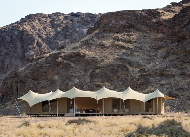 Located in one of the most remote areas of the Kaokoveld, Hoanib Skeleton Coast Camp boasts dramatic rugged landscapes dotted with the ancient welwitschia plant, dry riverbeds and seas of soft sand dunes.