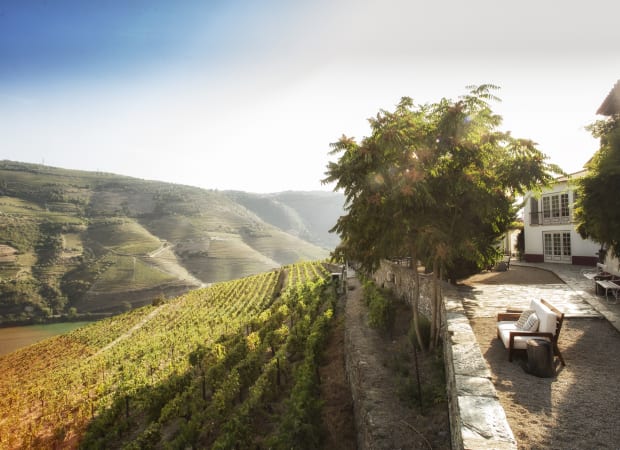 Traditional quinta estate in the Douro Valley, surrounded by rolling hillside