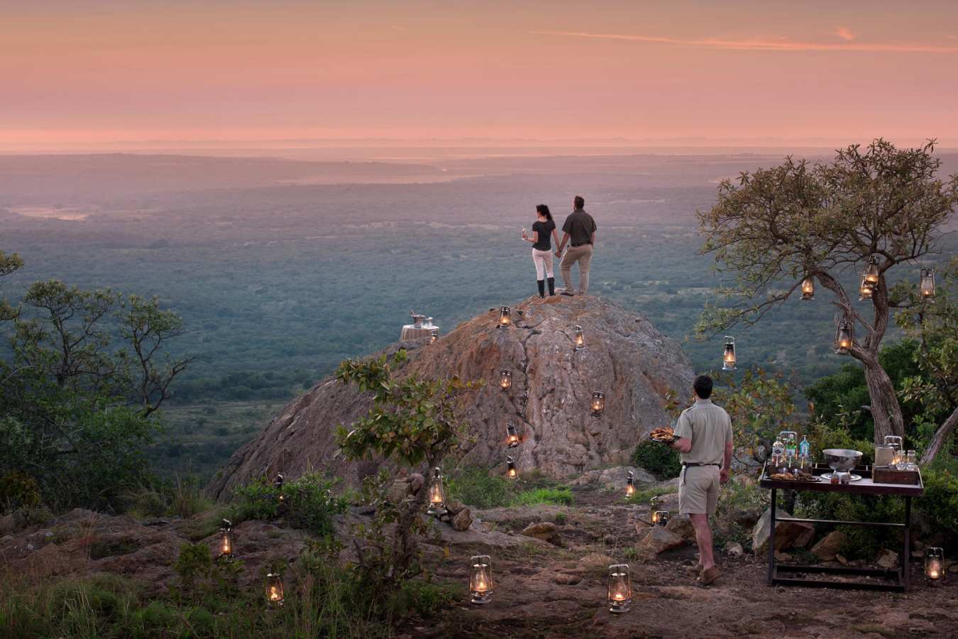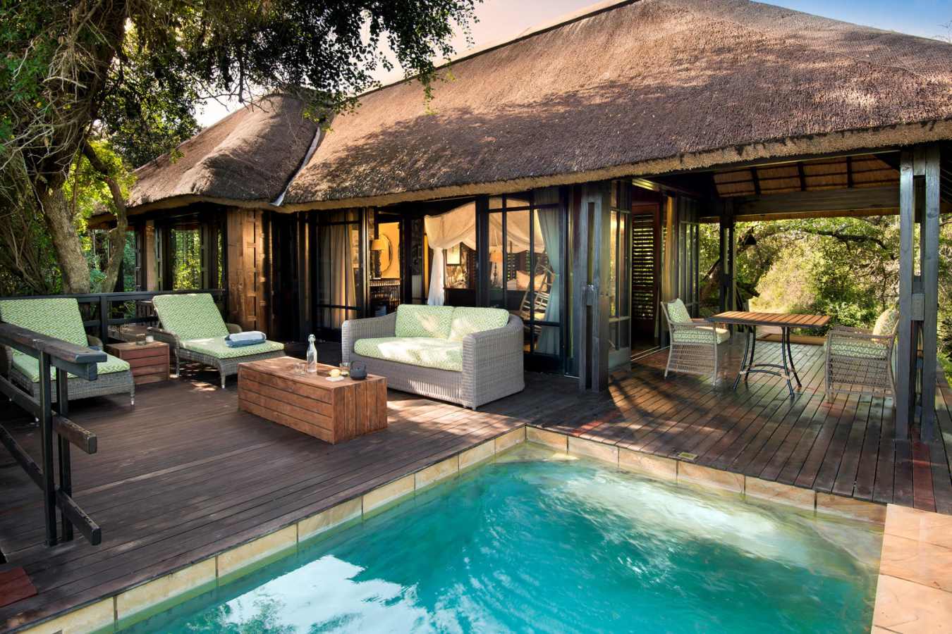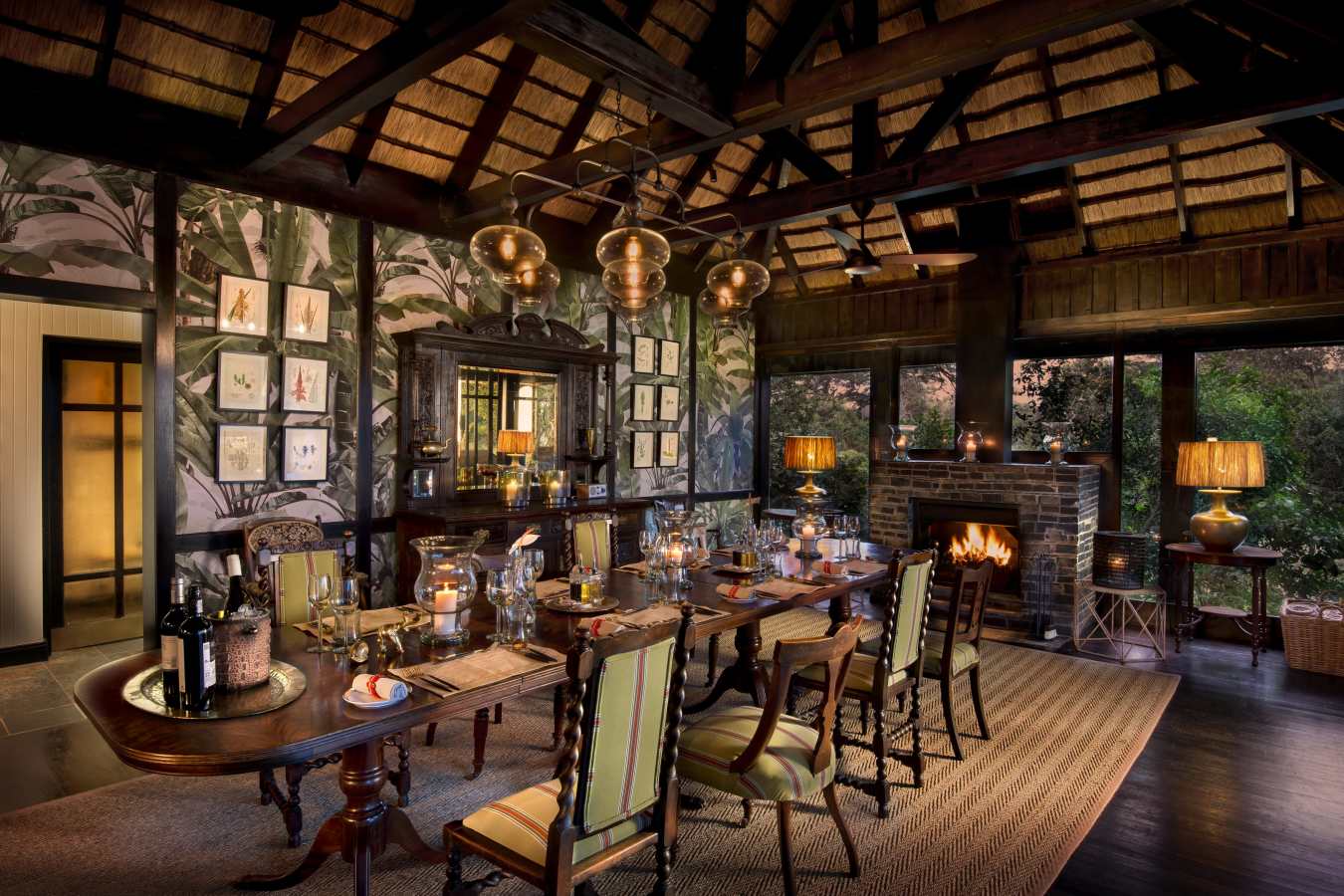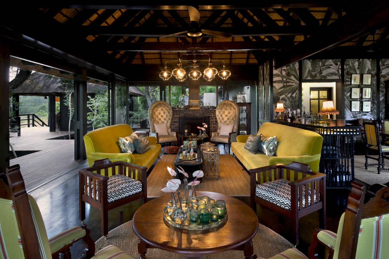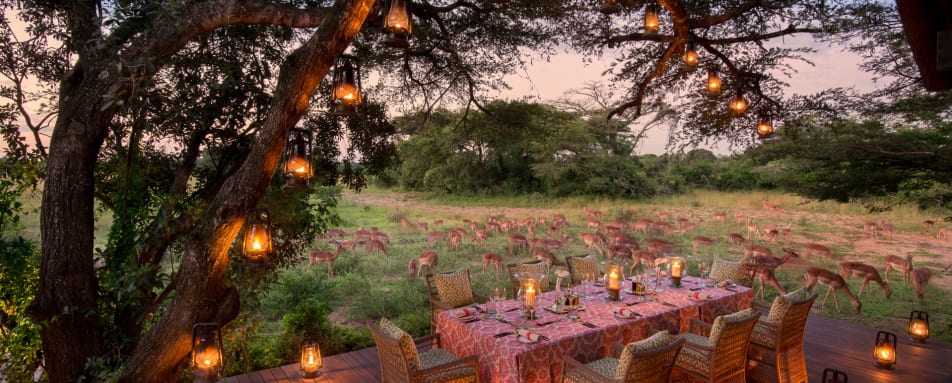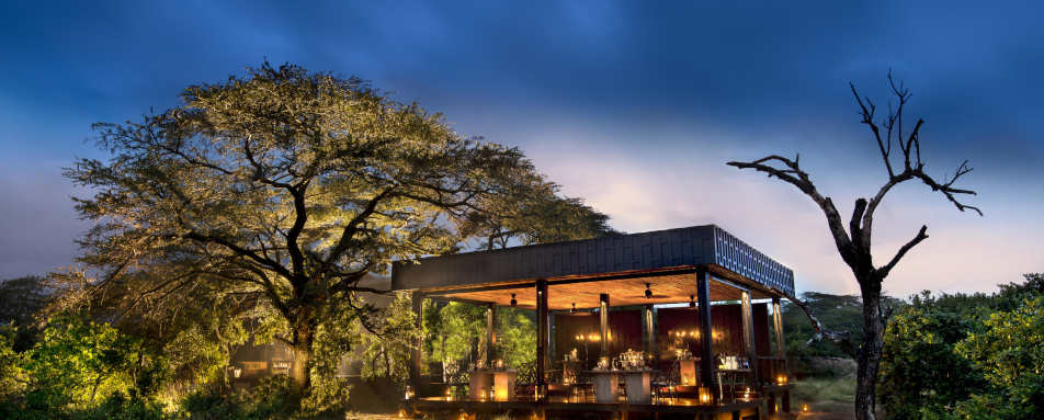 Relax and unwind in the comfortable sitting area in front of a warm and inviting open fireplace. Savour delicious and innovative Pan African meals, served on the expansive game viewing decks or in a beautiful and remote bush setting.