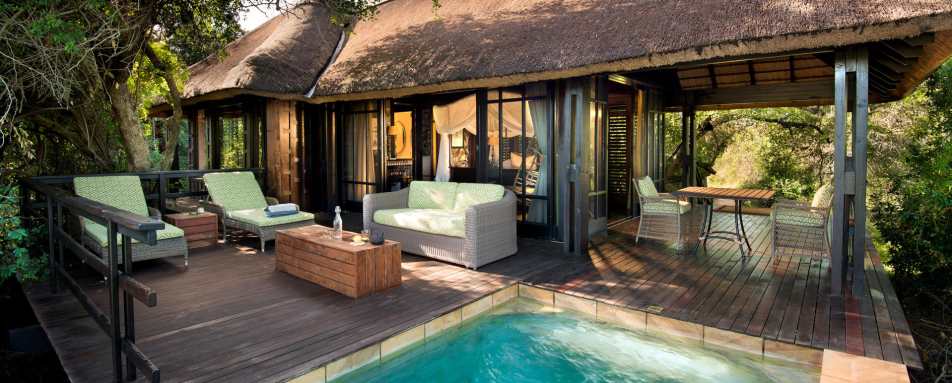Phinda Vlei Lodge is an elegant and exclusive lodge whose stilted suites of thatch, teak and glass overlook Phinda’s unique ’vlei ’ or pan system at the edge of the forest. Each of the six suites boasts a large, airy double bedroom with spacious en-suite bathroom and gorgeous free standing tubs, private plunge pool and outdoor deck, ideal for bird and game watching.