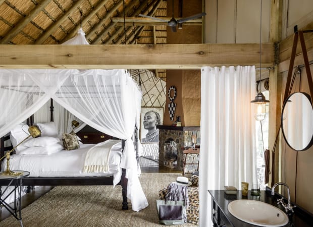 The 12 suites here combine the elements of a tented camp and traditional bush camp and are beautifully furnished with lots of natural fibres. Outside enjoy your private deck and plunge pool