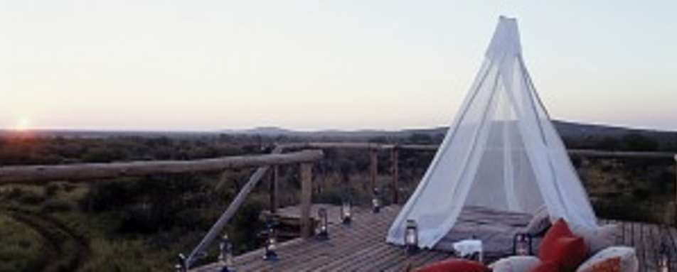 Spend a night sleeping under the stars on a beautiful deck overlooking the Veldt.