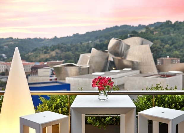 The central location and spectacular views of the Guggenheim make The Artist Grand Hotel of Art Billbao an ideal base from which to explore the museum and the sights of Bilbao as part of a longer trip exploring the Basque region. With 145 rooms, a restaurant with panoramic views, bar, gym and wellness centre, it is a comfortable city hotel.