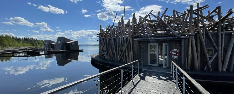 This boutique hotel features six floating cabins and as well as land cabins and on the shoreline. Each room features a private terrace, a great spot to enjoy the midnight sun in summer, the Northern Lights between August and April or simply to enjoy the pure, clean, detoxing air that Swedish Lapland offers.