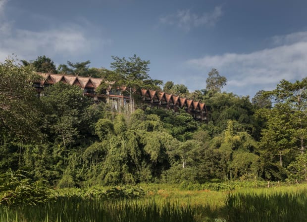 The Anantara is a stunning luxury hotel set high up in the lush hills of Thailand's border overlooking Myanmar and Laos, in the heart of the Golden Triangle. Explore three countries, enjoy a walk with elephants, or simply relax and take in the view.