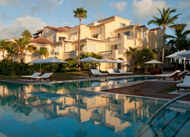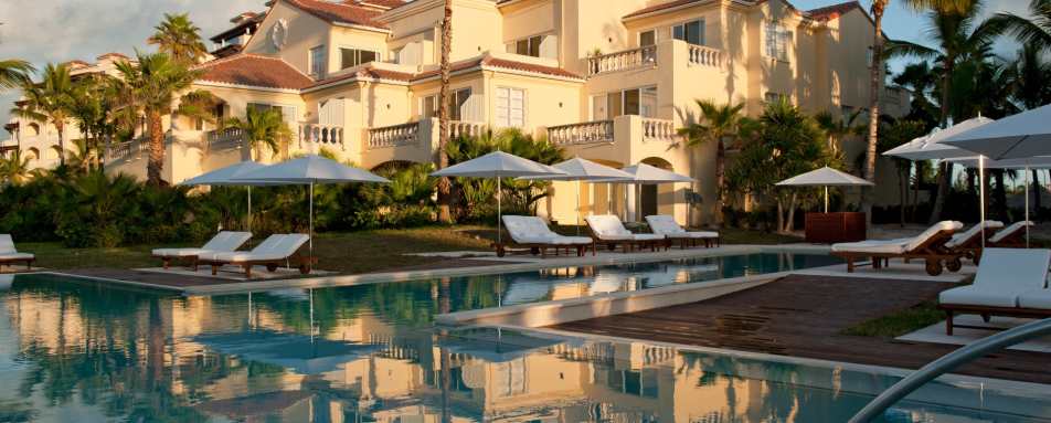The Grace Bay Club is an intimate and elegant property located along 11 acres of immaculate beach with white powdery sand and turquoise blue water.