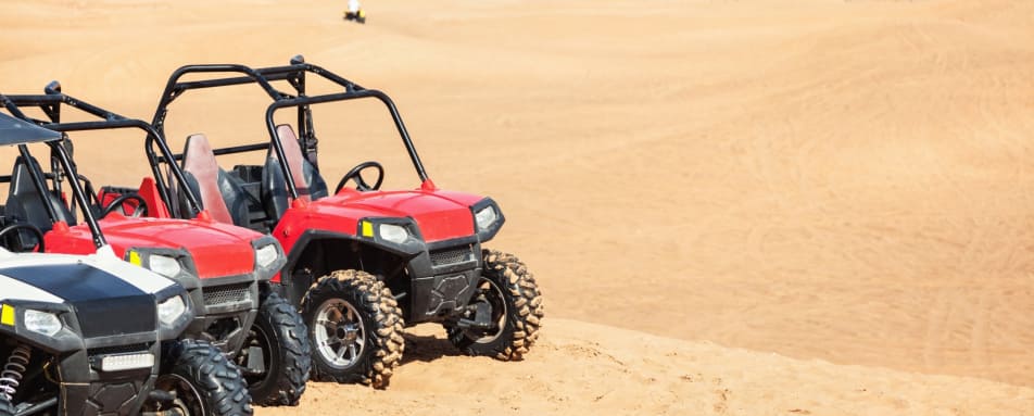 Led by an experienced instructor, experience the thrill of driving across the sliding desert sands in a specially adapted dune buggy which is powerful and reliable on sand and comes with a complete roll cage, bucket seats and safety harness. Climb up and over the peaks and valleys of the majestic desert dunes on a 10 kilometre winding track full of action and adventure.