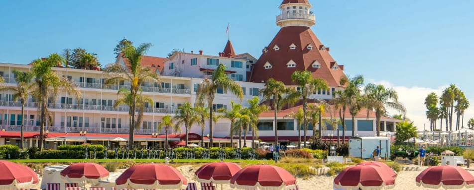 Sitting on the water's edge on the golden sands of Coronado beach, the Hotel del Coronado presents the quintessential southern California resort experience. With its whitewashed exterior, conical towers and balconies, The Del as it is affectionately known, is an iconic hotel seeped in history with past guests from Marilyn Monroe to Charles Lindbergh.
