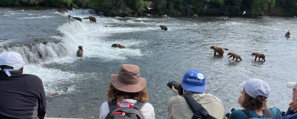 Alternatively, this scenic trip can be made by floatplane, landing on a remote mountain lake or river within either Lake Clark or Katmai National Parks. Again, this will be determined by the season and the bears’ food sources. During July and September, a slightly longer flight of 1.5-hours to Brook Falls, offers the chance to witness the unforgettable sight of the bears catching and feeding on the leaping salmon.