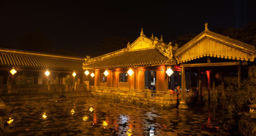 Embark on a late afternoon cruise on Hue’s Perfume River, leading to a historic home where royal elegance meets Vietnamese culture. Be welcomed by the owners for a concert and traditional meal, surrounded by exquisite architecture, art and lush gardens.