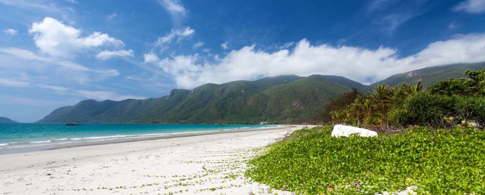 One of the gems of Vietnam’s coastline, the Con Dao archipelago is a collection of naturally beautiful isles with glistening beaches, secluded coves and turquoise seas, while the wild, unspoilt interior is a haven for wildlife, with 80% designated a marine and national park. Con Son, the largest of the islands, is an idyll of pristine white sands and tropical jungle dotted with luxury hotels.