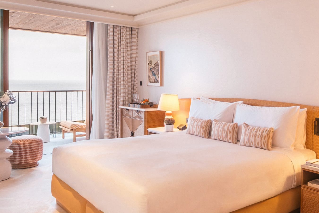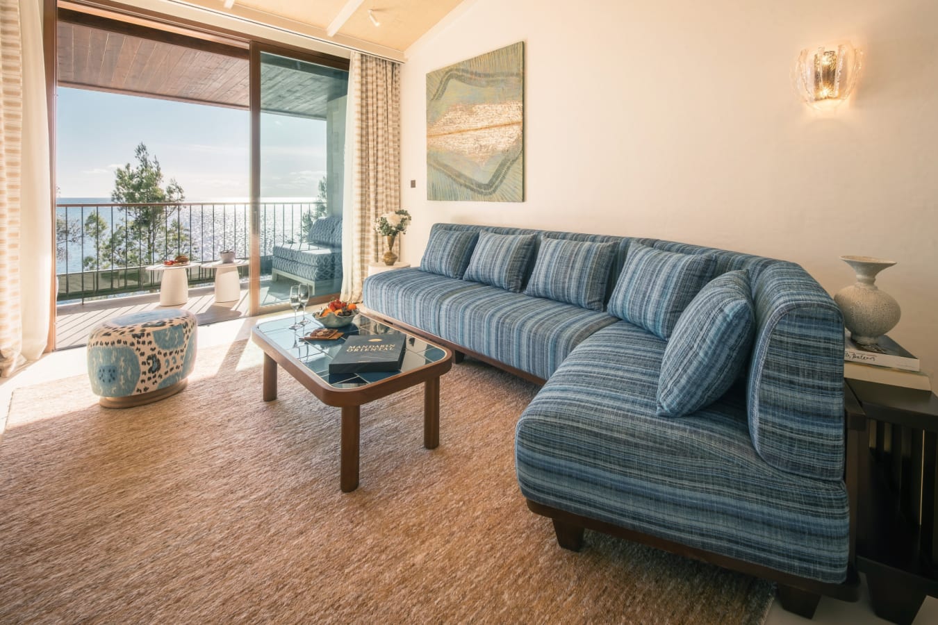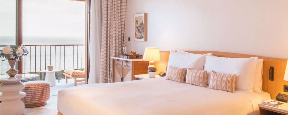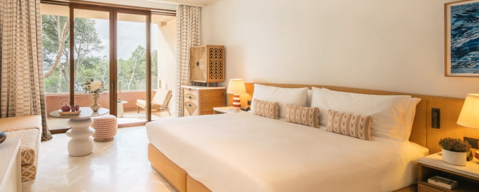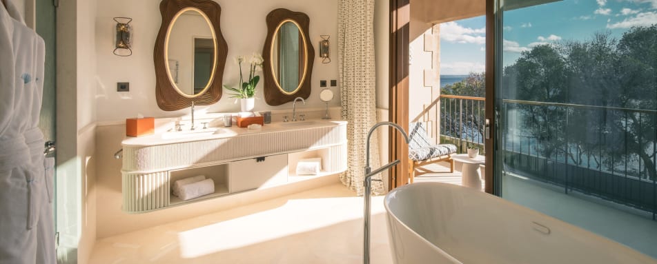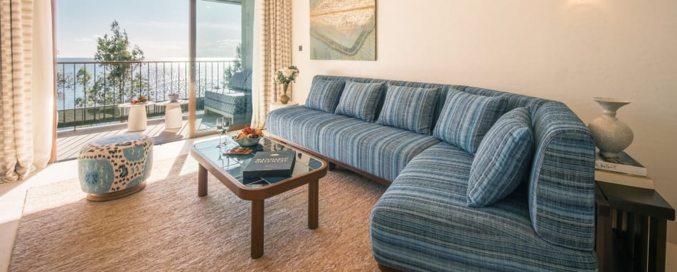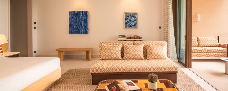 The hotel features a collection of beautifully appointed rooms, suites and villas, thoughtfully designed to reflect the surrounding landscape. Soft, natural tones and elegant materials create a sense of harmony, while floor-to-ceiling windows invite the outside in. Entry-level rooms offer garden or sea views with private terraces, while suites provide generous living space and enhanced privacy. For the ultimate escape, the villas boast private pools and expansive outdoor areas, ideal for families or those seeking seclusion.