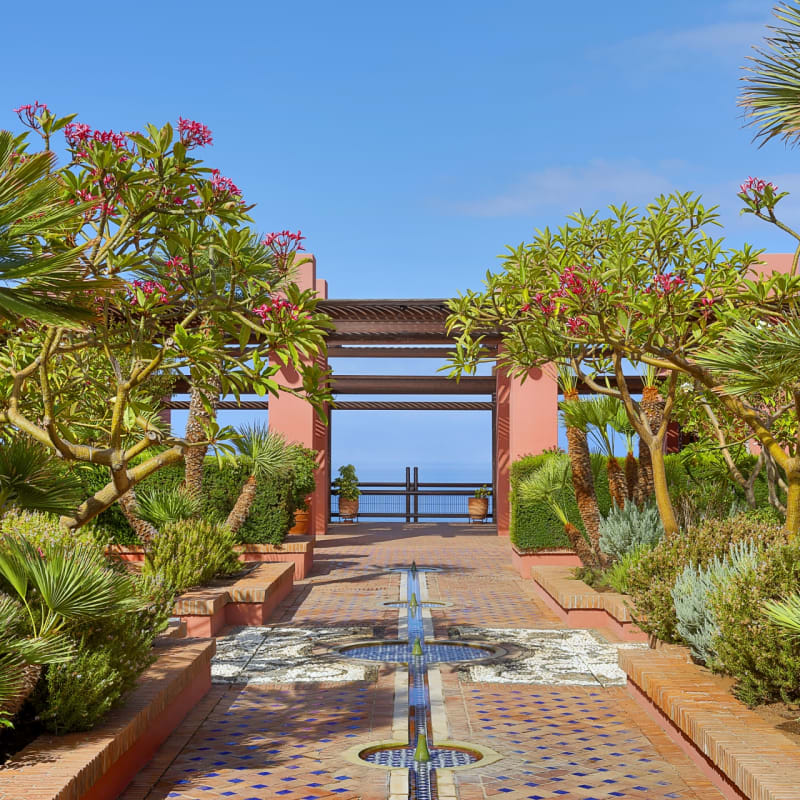 The Ritz-Carlton, Abama is a luxurious resort located in Guia de Isora, and part of the luxury hotel group. Set in an unspoilt region on the sunny west coast of Tenerife, this cliff top resort commands panoramic views over the golf course and across to the Atlantic Ocean towards the lush island of La Gomera. The unique Moorish architecture situated amidst banana plantations and lush subtropical gardens creates a unique and visually stunning resort.