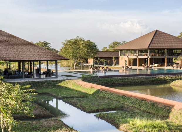 With Sigiriya Rock Fortress as its backdrop, Water Garden Sigiriya hotel is a modern take on the 2,000 year old water garden found at the ancient ruins. Designed by renowned architect Channa Daswatte, this luxury hotel is as much about the views as it is the interiors.